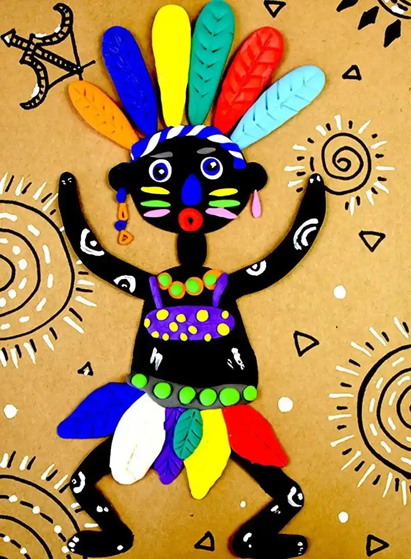 创意美术儿童画《印第安人》一,适合年龄:5-7岁 二,教学重 - 抖音